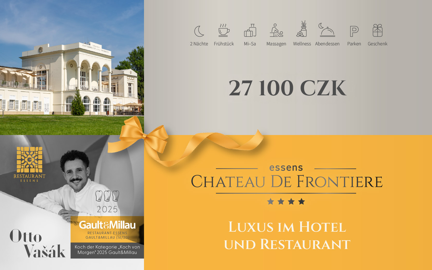 Für alle Liebhaber außergewöhnlicher Gastronomie und Freizeitsportarten haben wir einen exklusiven vorbereitet, der Sie auf eine Reise voller Aromen und Düfte mitnimmt. Dieser Aufenthalt ist eine Kombination aus luxuriöser Unterkunft und einem unvergesslichen kulinarischen Erlebnis in unserem preisgekrönten Restaurant Chateau Petit.